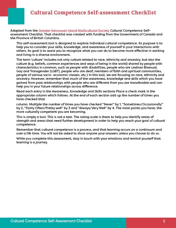 This self-assessment tool is designed to help you to consider your skills, knowledge, and awareness of yourself in your interactions with others. Its goal is to assist you to recognize what you can do to become more effective in working and living in a diverse environment.